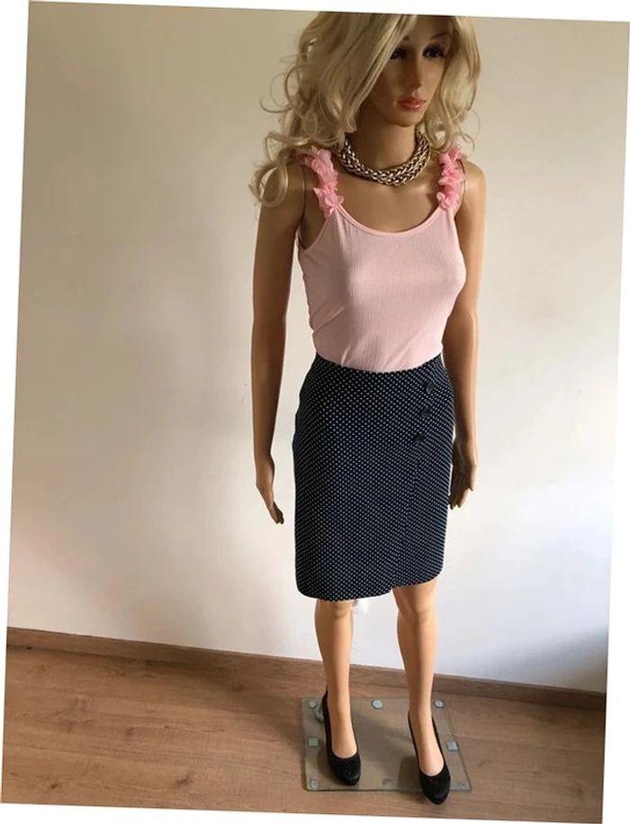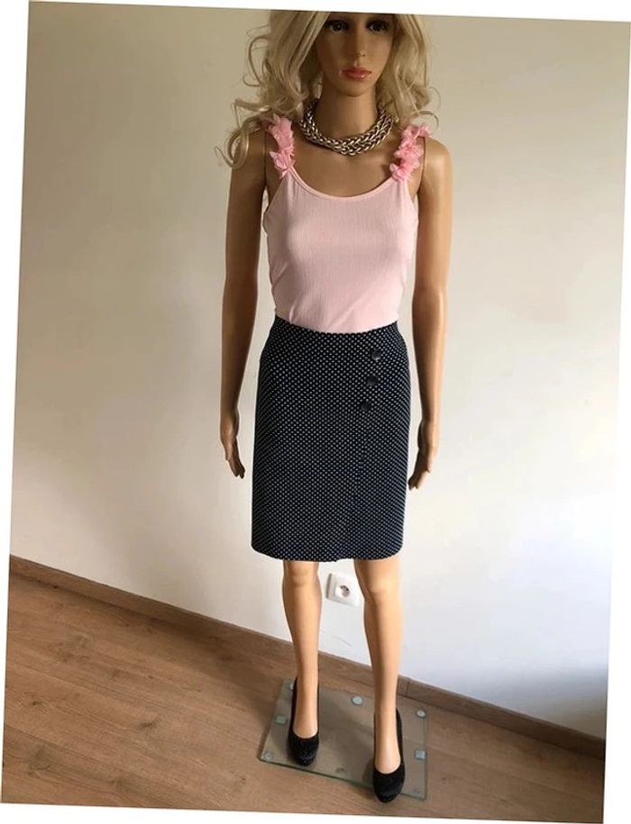 Jolie jupe bleue marine à pois blancs, de marque Esprit. Trois boutons décoratifs sur le devant. Taille XL. Portée quelques fois, en très bon état. taille 40 cms à 49 cms longueur 52 cms Le tissu est extensible 75% polyester, 12% viscose, 10% coton et 3% elasthanne Le prix reste négociable dans la limite du raisonnable. Un petit cadeau dans le colis.