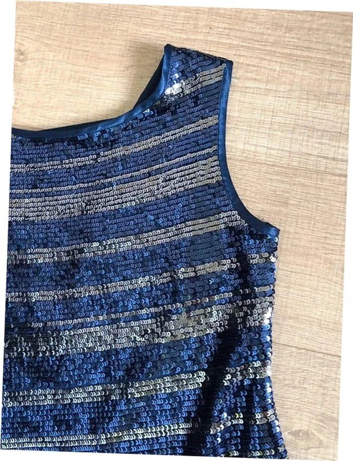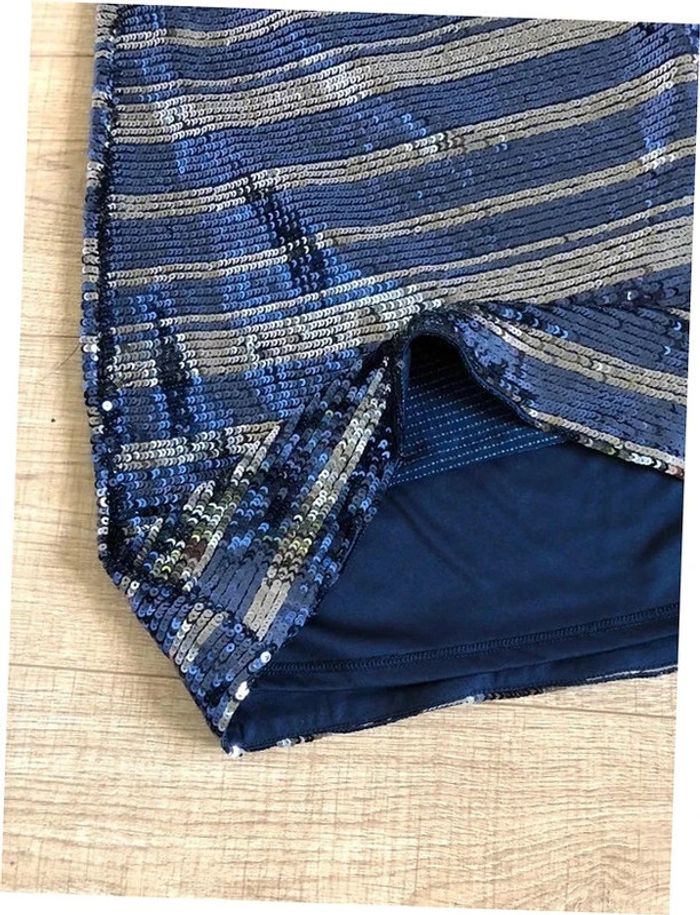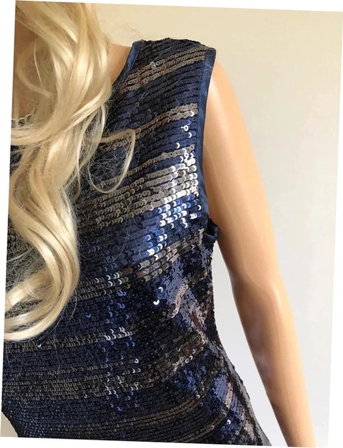 Robe bleue marine et argentée neuve en sequins Morgan taille M - photo numéro 12