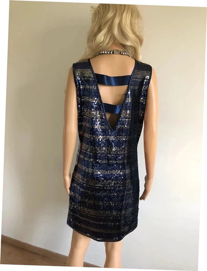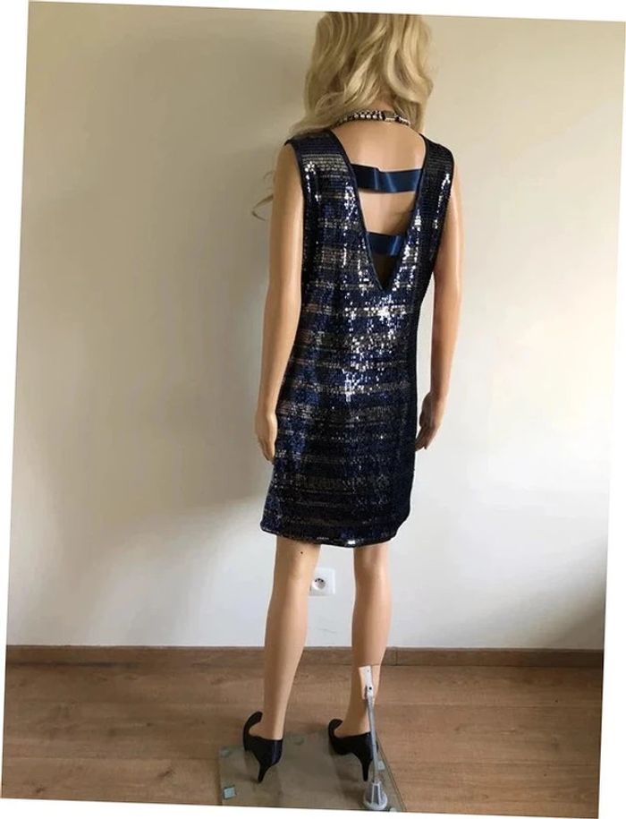 Robe bleue marine et argentée neuve en sequins Morgan taille M - photo numéro 7