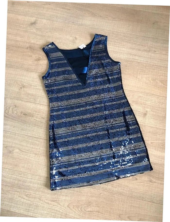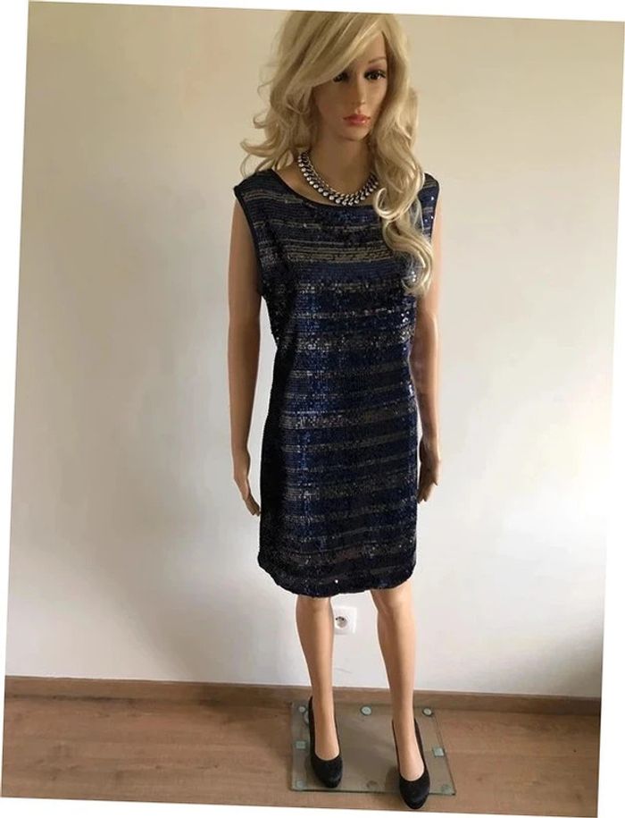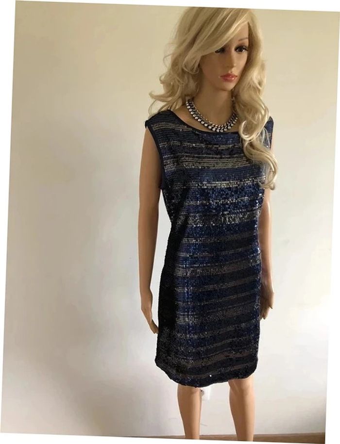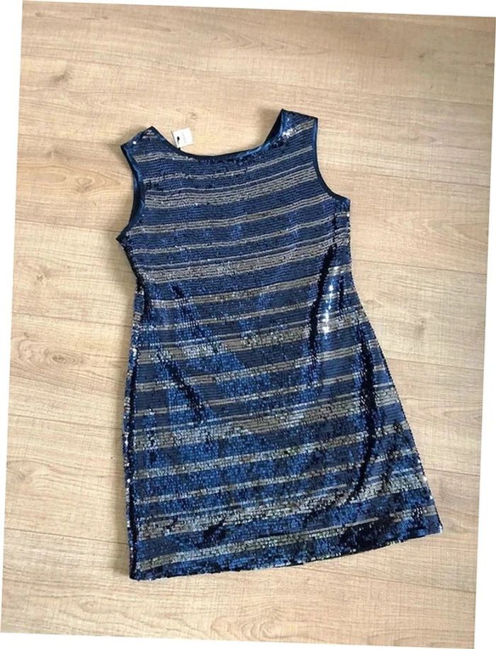 Robe bleue marine et argentée neuve en sequins Morgan taille M - photo numéro 1