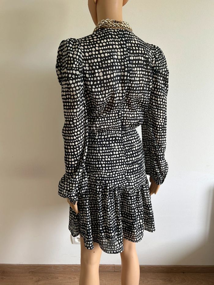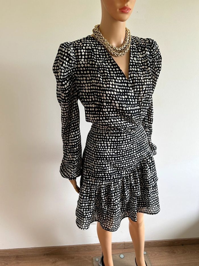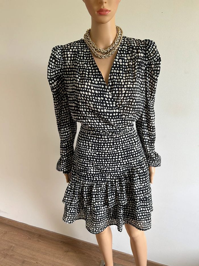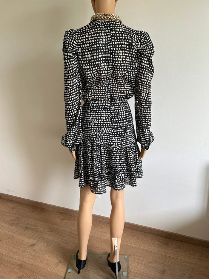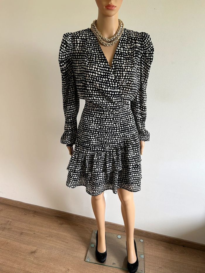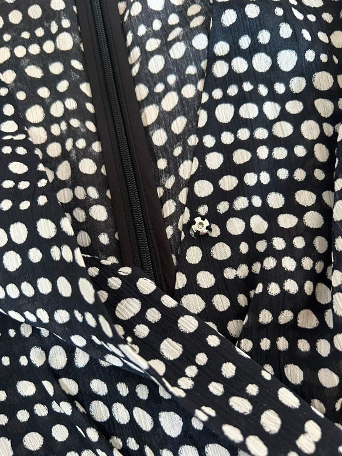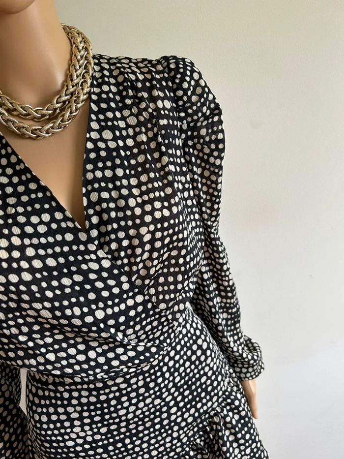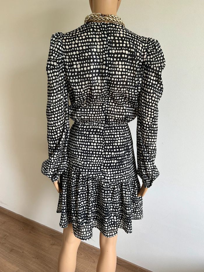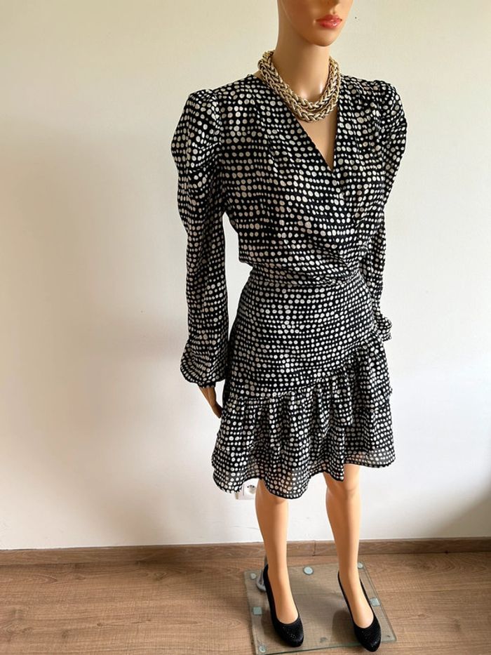 Magnifique robe imprimée noire et écrue, à manches longues, de marque Morgan. Fermeture dans le dos. Taille 40. Elle est neuve avec étiquette (valeur 80€). aisselle à aisselle 49 cms épaule à épaule 41 cms longueur manches 63 cms taille 40 cms longueur depuis épaule 92 cms 100% polyester Le prix reste négociable dans la limite du raisonnable. Un petit cadeau dans le colis 🌸 (Boîte 21)