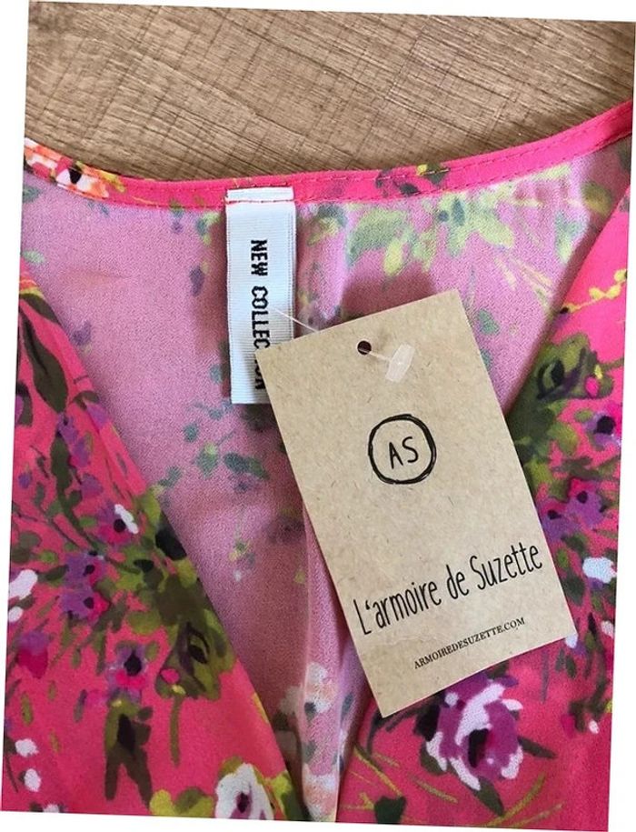 Jolie robe rose imprimée fleurie sans manches, de marque New Collection. Taille unique, qui convient jusqu’au petit 38. Elle est neuve avec étiquette. aisselle à aisselle 45 cms taille 33 cms a 48 cms longueur depuis épaule 99 cms 95% viscose et 5% elasthanne Le prix reste négociable dans la limite du raisonnable. Un petit cadeau dans le colis 🌸