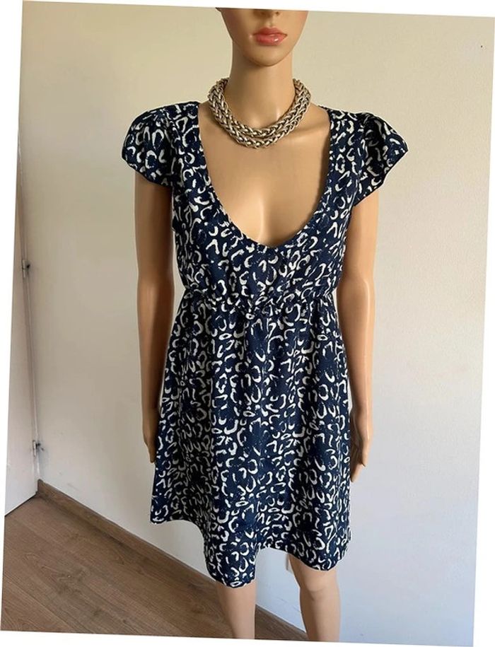 Robe courte légère bleue marine et blanche Molly Bracken taille unique jamais portée