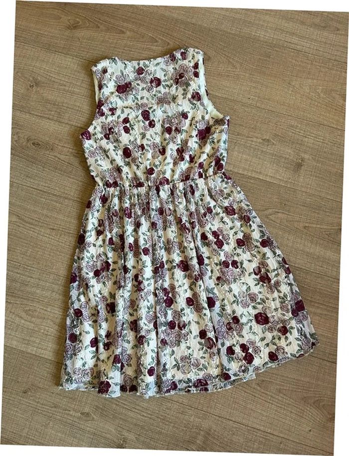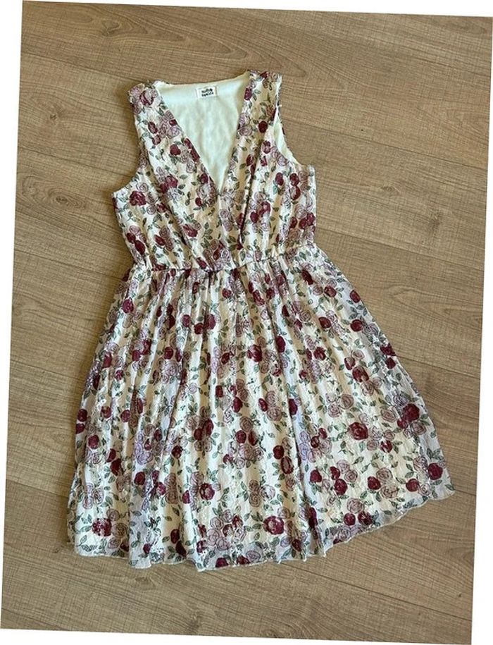 Jolie robe imprimée fleurie en dentelle, sans manches, de marque Molly Bracken. Taille unique qui convient jusqu’au petit 38. Jamais portée, état neuf. aisselle à aisselle 44 cms et plus taille 35 cms à 48 cms longueur depuis épaule 89 cms Le tissu est extensible 65% polyamide et 35% coton Le prix reste négociable dans la limite du raisonnable. Un petit cadeau dans le colis. (Boîte 50)