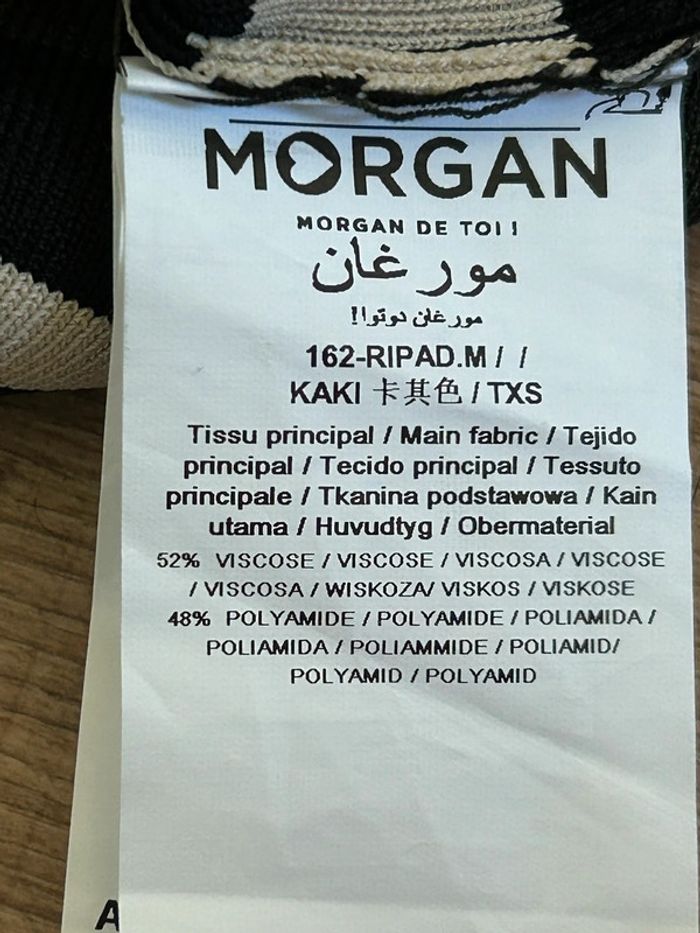 Magnifique robe rayée moulante kaki noire et beige, avec manches 3/4, de marque Morgan. Taille XS. Elle est neuve avec étiquette. aisselle à aisselle 33 cms à 45 cms taille 28 cms à 35 cms longueur depuis épaule 86 cms Le tissu est extensible 52% viscose et 48% polyamide Le prix reste négociable dans la limite du raisonnable. Un petit cadeau dans le colis 🌸 (Boîte 49)