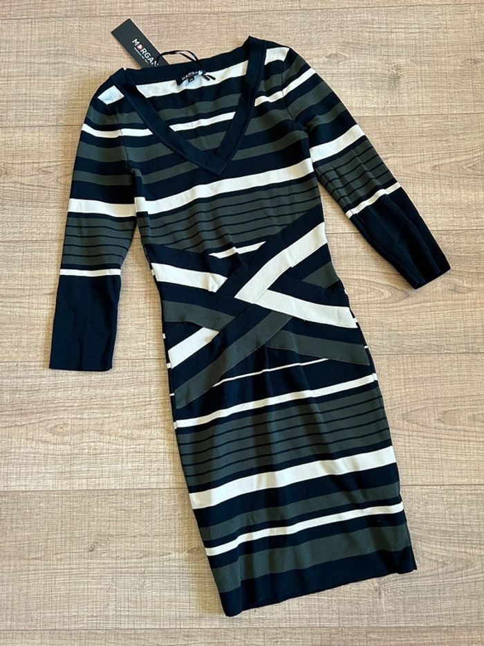 Robe rayée moulante neuve avec manches 3/4 Morgan taille XS