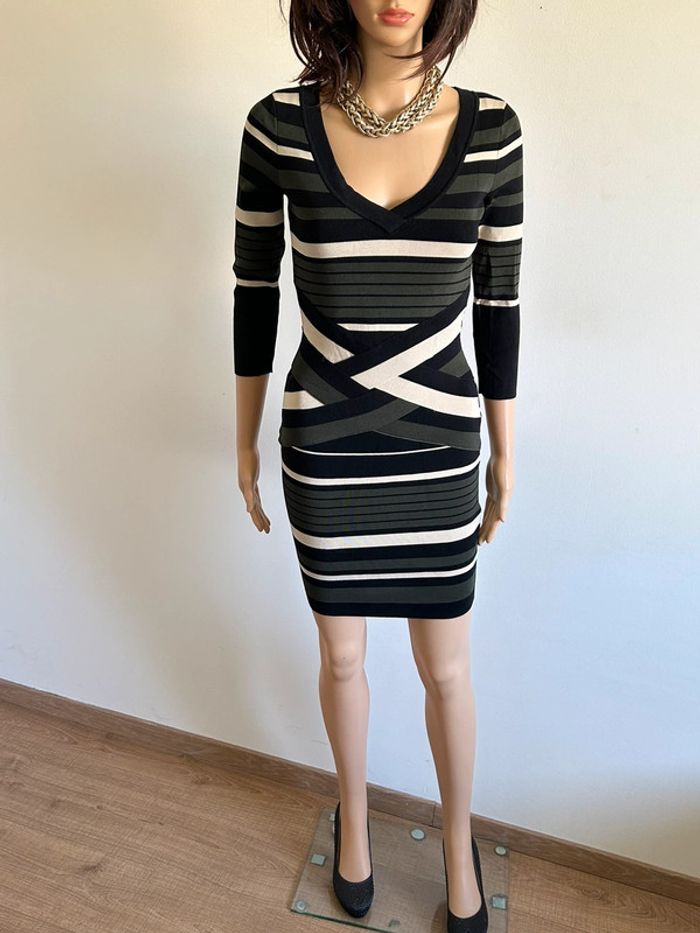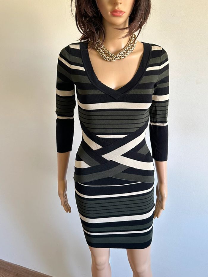 Robe rayée moulante neuve avec manches 3/4 Morgan taille XS - photo numéro 3