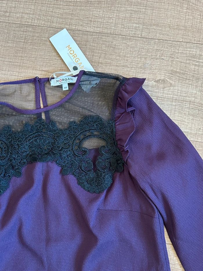 Robe prune neuve avec plumetis noir Morgan taille 40 (valeur 70€) - photo numéro 3