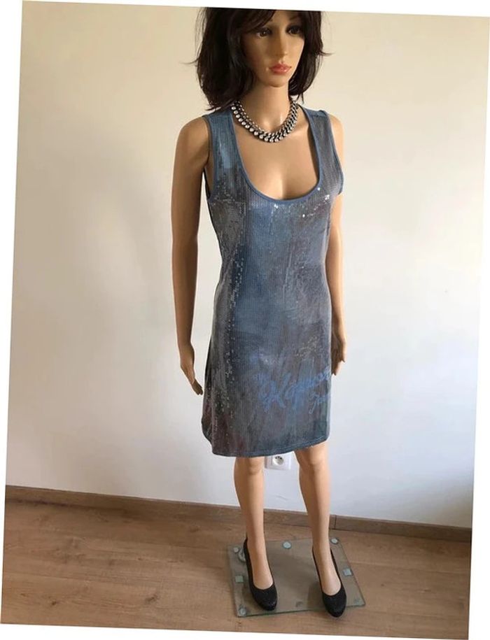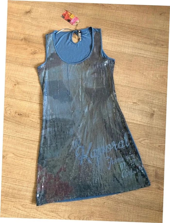 Robe bleue neuve sans manches avec sequins Kaporal taille M - photo numéro 1