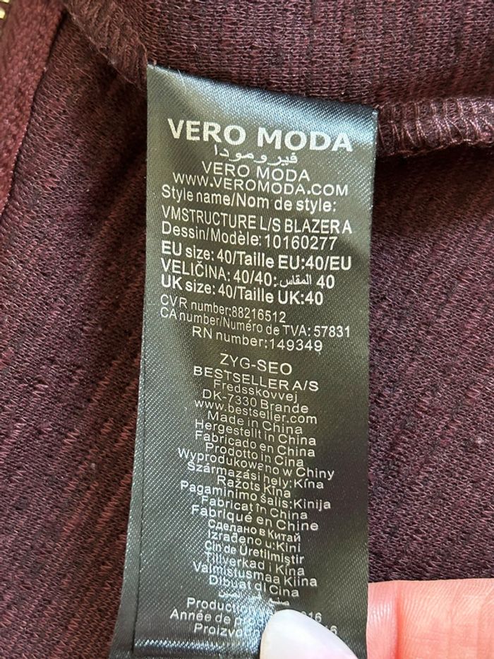 Blazer bordeaux Vero Moda taille 40 bon état (présence de bouloches) - photo numéro 13