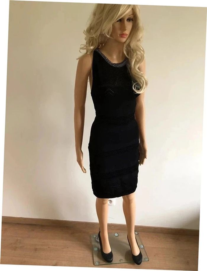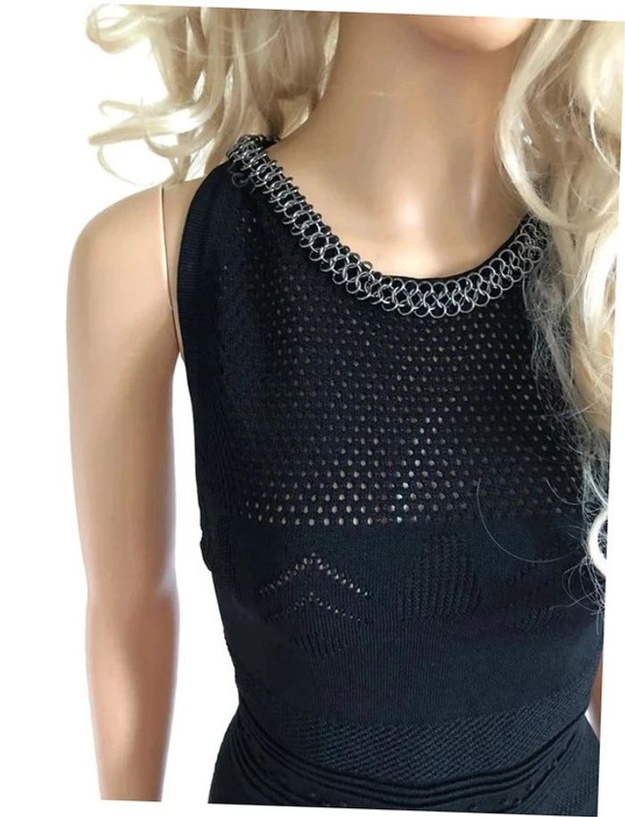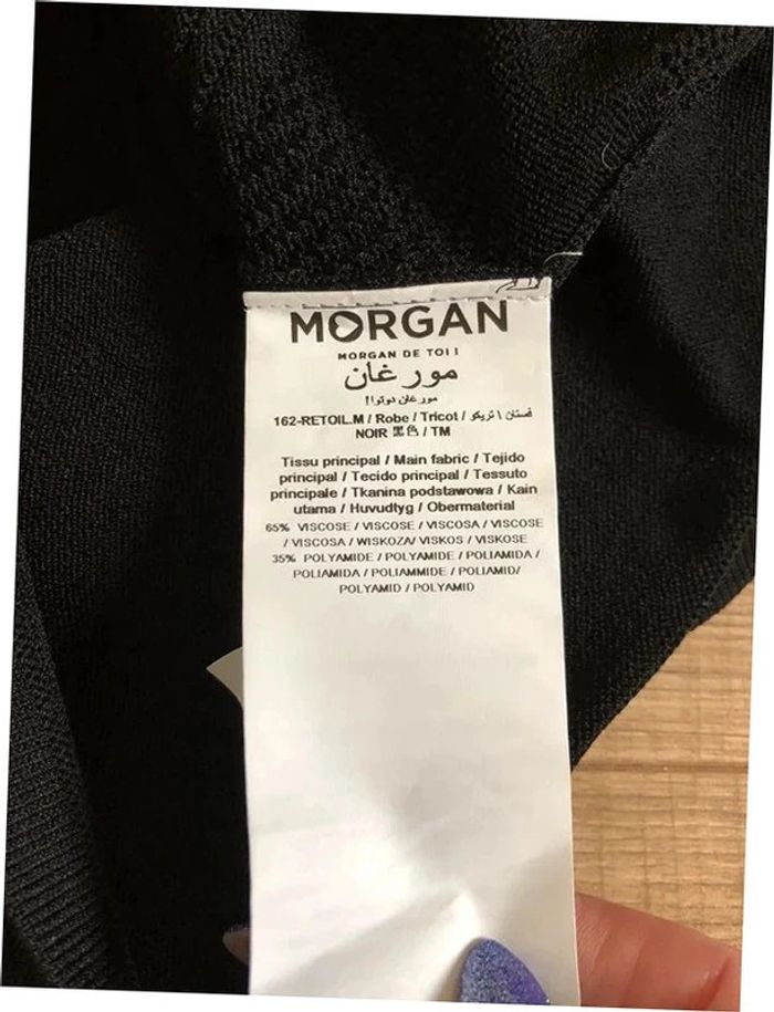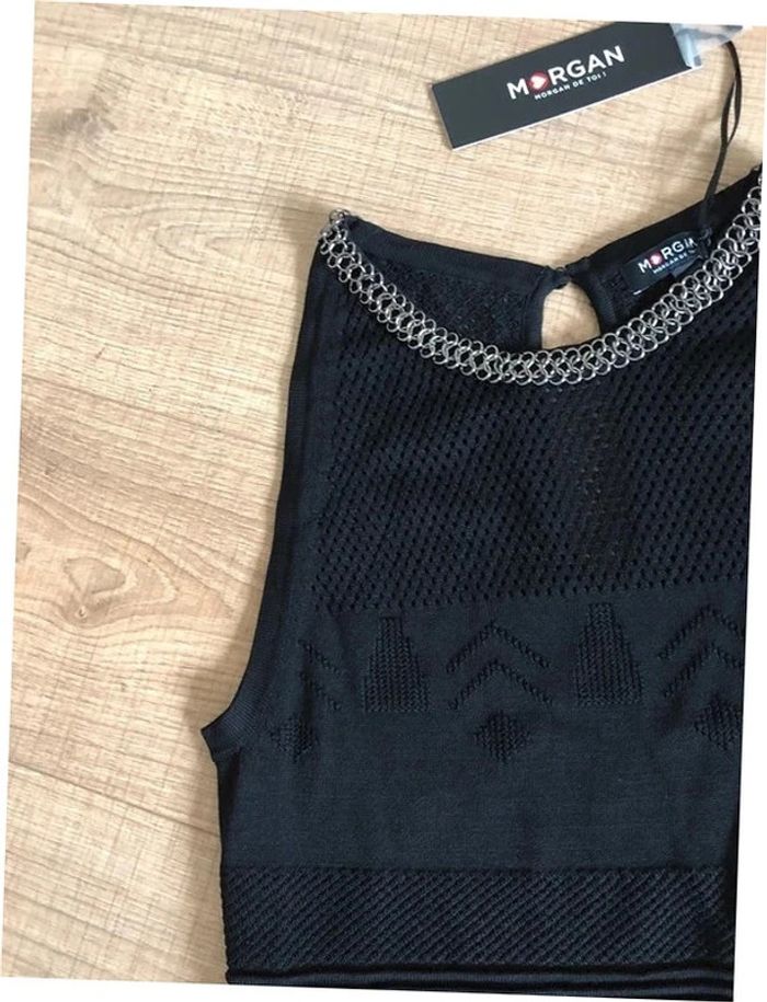 Magnifique robe noire tricot sans manches, avec chaînette argentée au niveau du cou, de marque Morgan. Taille M. Elle est neuve avec étiquette (valeur 65€). aisselle à aisselle 43 cms et plus taille 37 cms et plus longueur depuis épaule 95 cms Le tissu est extensible 65% viscose et 35% polyamide Le prix reste négociable dans la limite du raisonnable. Un petit cadeau dans le colis 🌸
