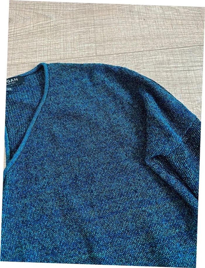 Magnifique pull court bleu pailleté, avec manches 3/4, de marque Morgan. Taille XS. Jamais porté, état neuf. aisselle à aisselle 62 cms et plus taille 45 cms et plus longueur depuis épaule 56 cms Le tissu est extensible Le prix reste négociable dans la limite du raisonnable. Un petit cadeau dans le colis 🌸 (Boîte 4)