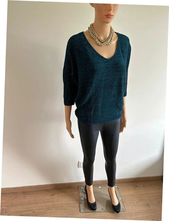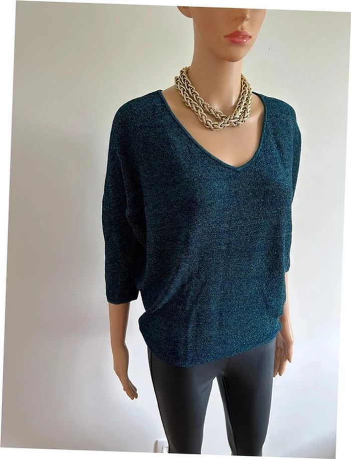 Pull court bleu pailleté Morgan taille XS jamais porté - photo numéro 13