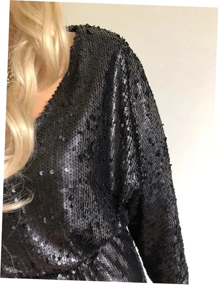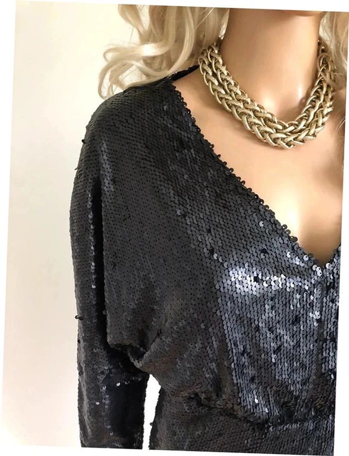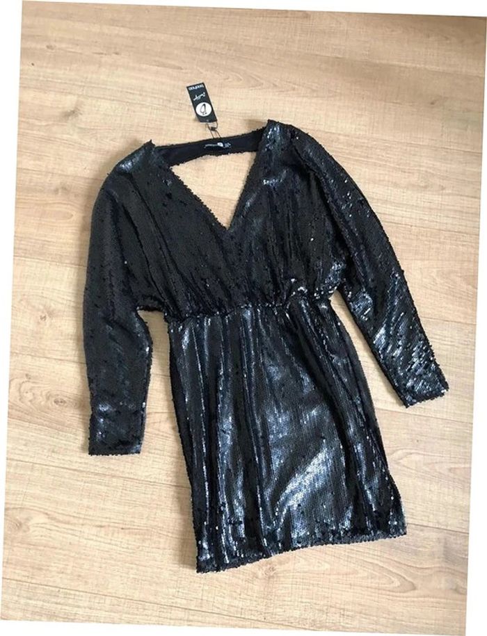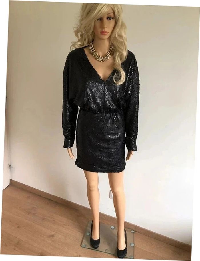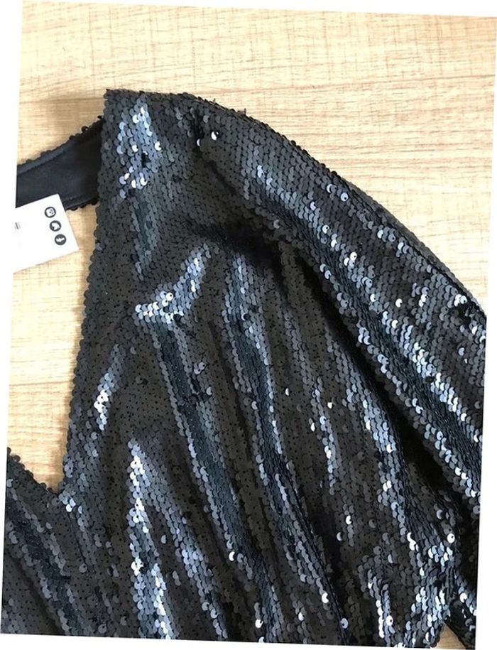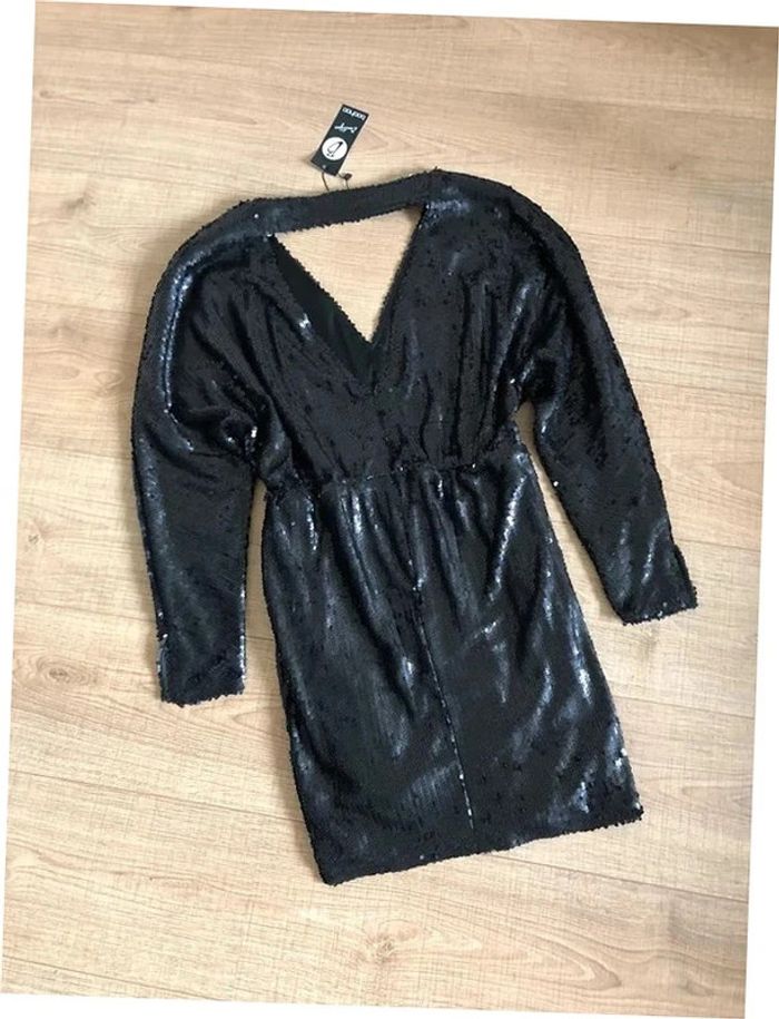 Robe noire neuve en sequins à manches longues Boohoo taille 38 - photo numéro 2