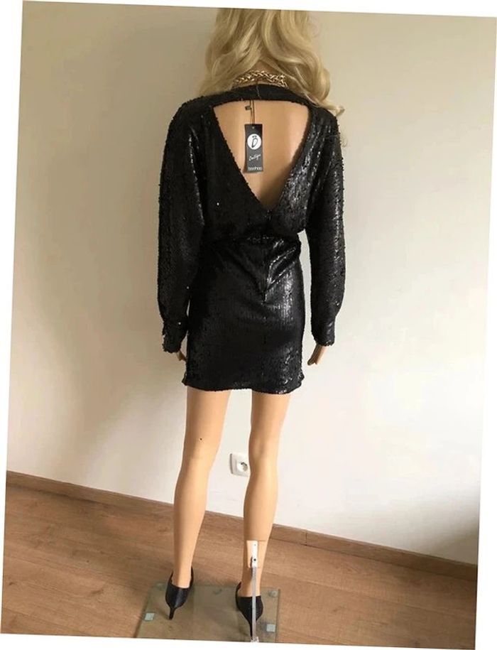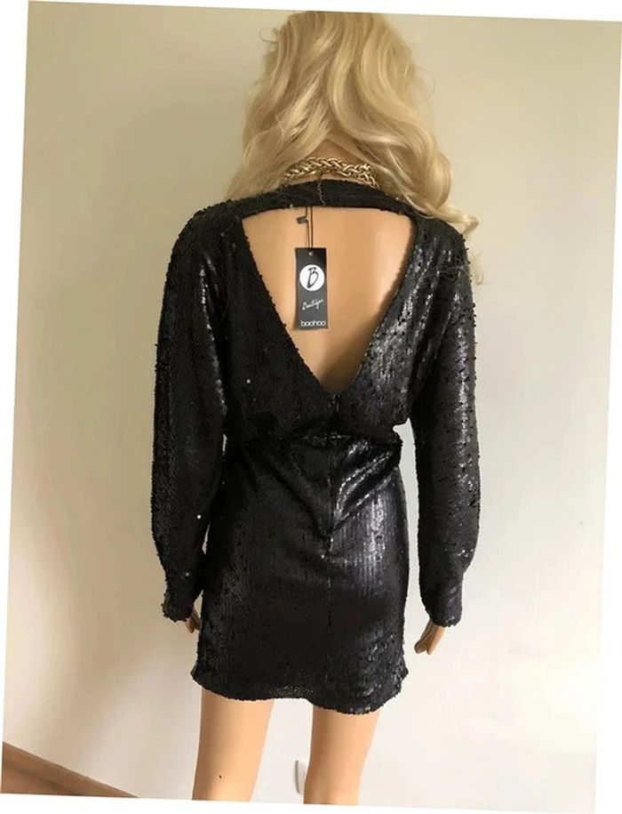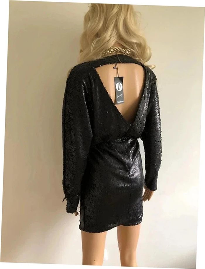 Robe noire neuve en sequins à manches longues Boohoo taille 38 - photo numéro 3