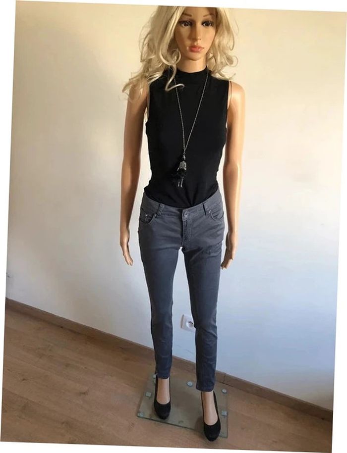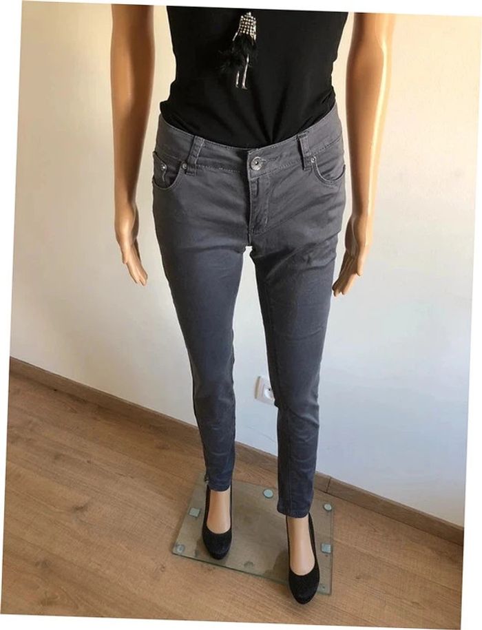 Pantalon skinny gris taille 38 TBE (taille petit) - photo numéro 1