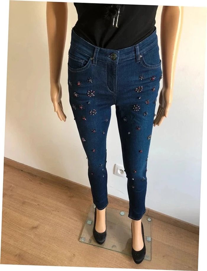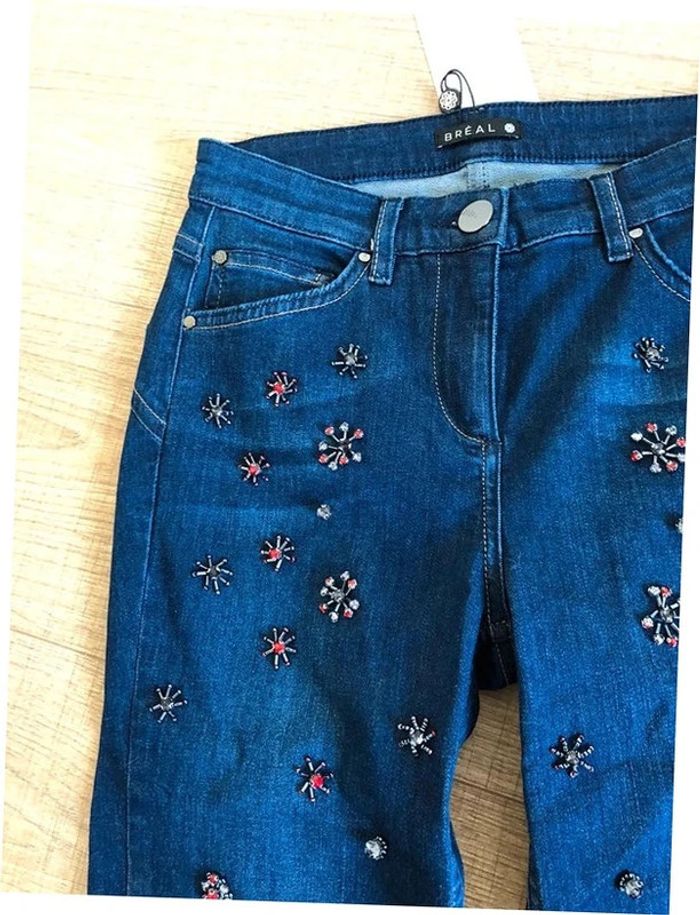 Jean bleu marine neuf 7/8ème avec strass Bréal taille 36 - photo numéro 1