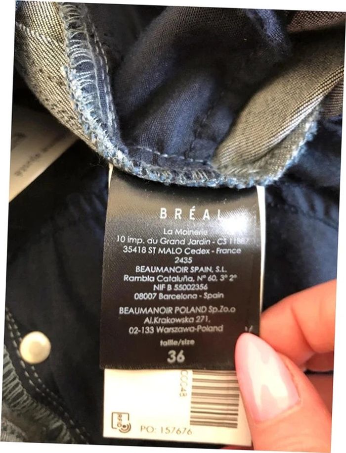 Jean bleu foncé 7/8ème, avec perles et strass sur le devant, de marque Breal. Taille 36. Coupe basculée. Il est neuf avec étiquette. taille 34 cms à 37 cms longueur 97 cms longueur entrejambes 72 cms Le tissu est extensible 92% coton, 7% polyester et 1% elasthanne Le prix reste négociable dans la limite du raisonnable. Un petit cadeau dans le colis.