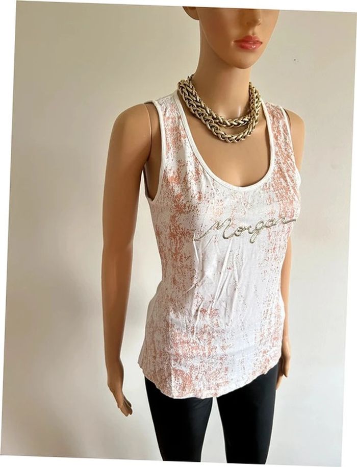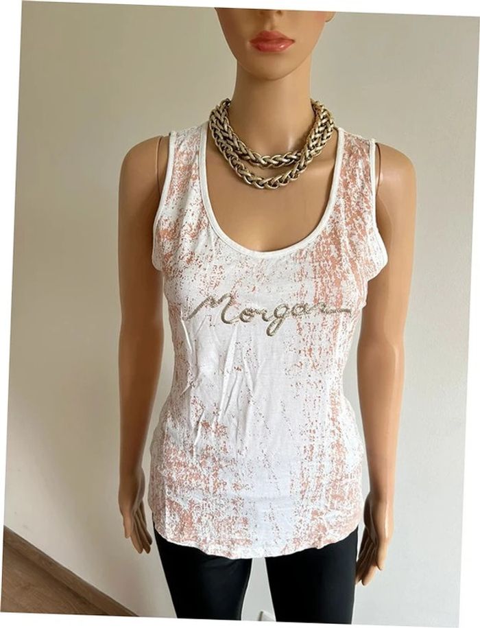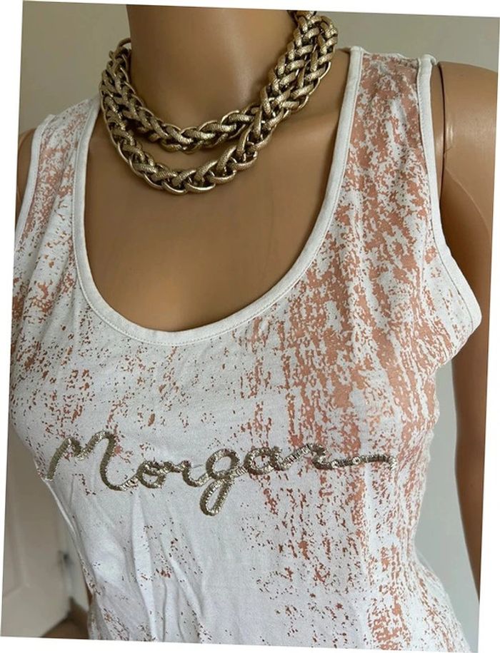 Débardeur blanc et doré Morgan taille M bon état - photo numéro 1