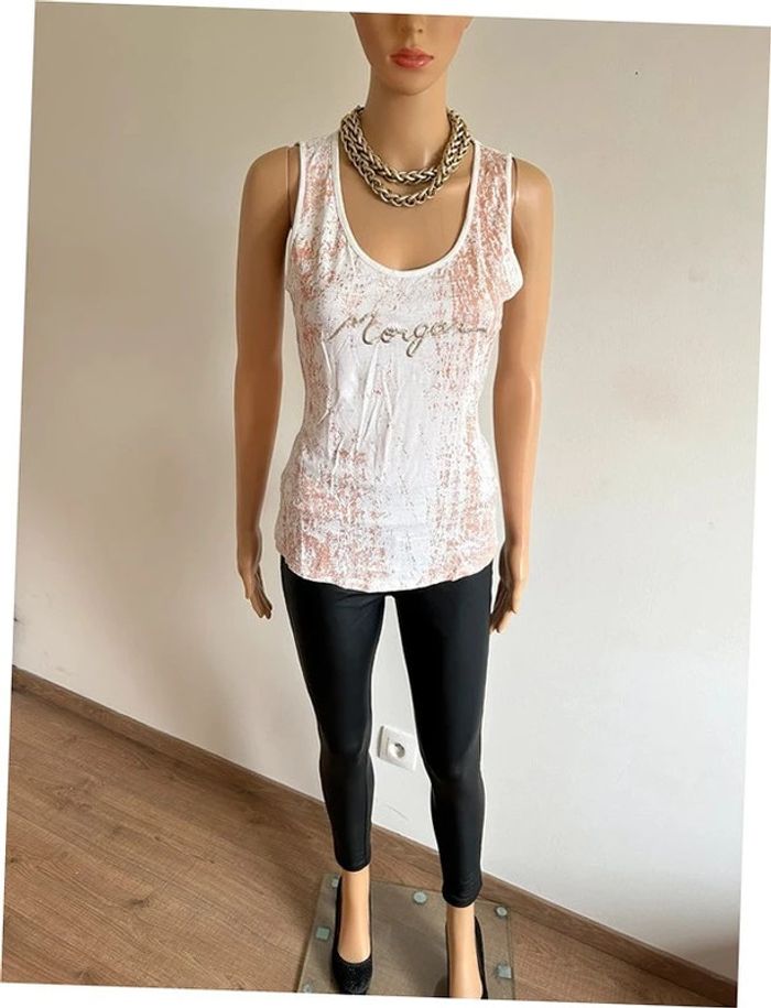 Débardeur blanc et doré Morgan taille M bon état - photo numéro 12