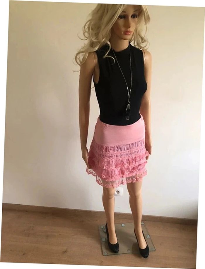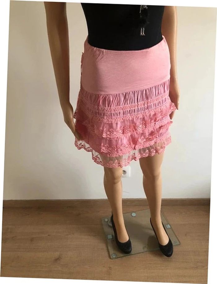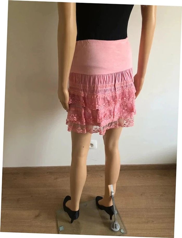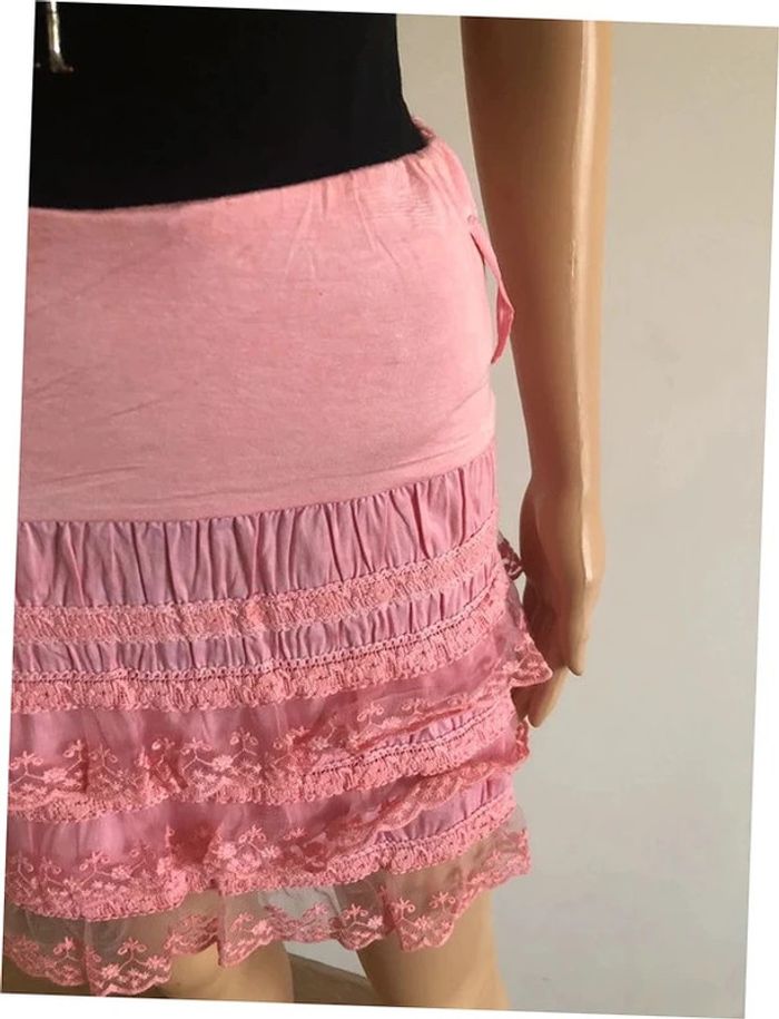 Jupe rose à volants avec dentelle taille unique jamais portée - photo numéro 12
