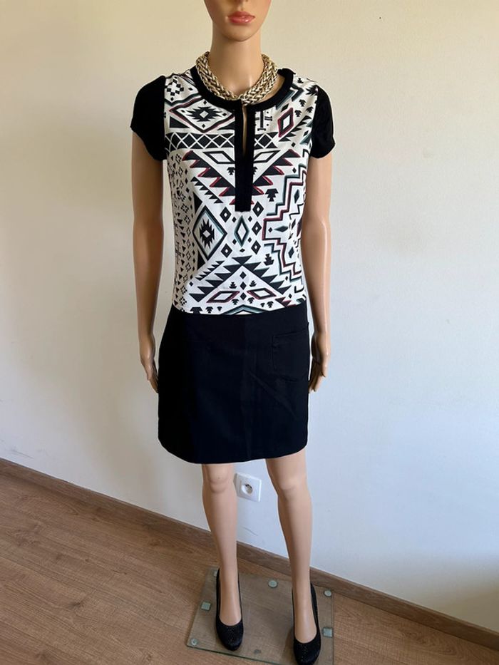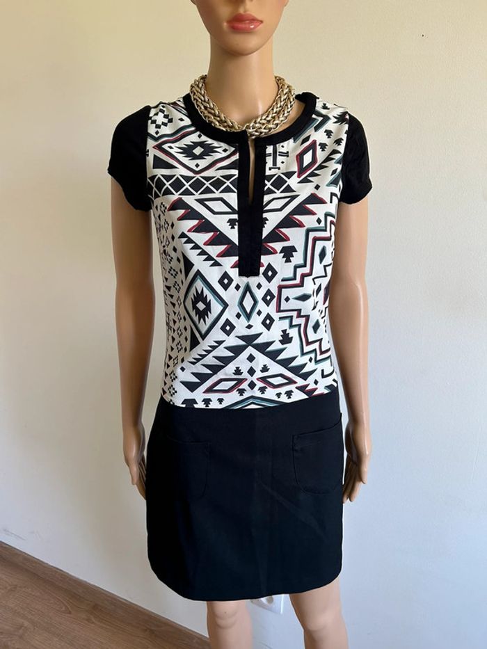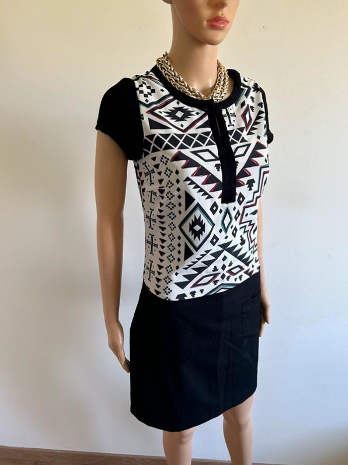 Robe noire et blanche neuve à manches courtes Miss Captain taille 36 (valeur 79€) - photo numéro 2