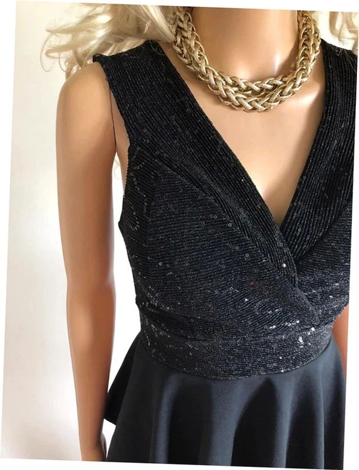 Magnifique robe noire sans manches, avec sequins sur la partie supérieure, de marque Made in Italy. Taille unique qui convient pour du 34/36. Elle est neuve avec étiquette. Jamais portée car trop petite pour moi. aisselle à aisselle 39 cms et plus taille 33 cms et plus longueur depuis épaule 78 cms Le tissu est extensible 95% polyester et 5% elasthanne Le prix reste négociable dans la limite du raisonnable. Un petit cadeau dans le colis. (Boîte 50)