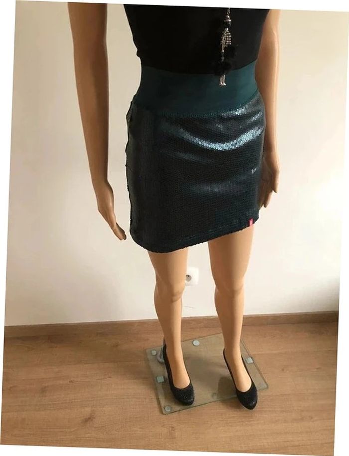 Jupe verte foncée neuve avec sequins Esprit taille M (valeur 50€) - photo numéro 5