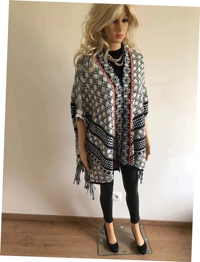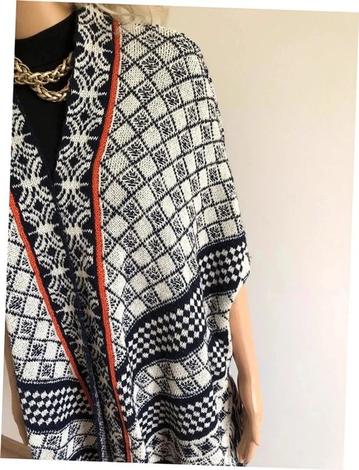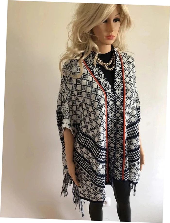 Poncho écru et bleu marine Cache Cache taille unique bon état - photo numéro 12