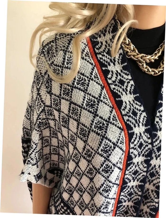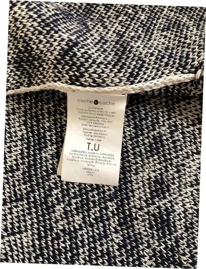 Joli poncho écru et bleu marine, de marque Cache Cache. Taille unique qui convient jusqu’au 40/42. Porté plusieurs fois mais encore en bon état. longueur depuis épaule 69 cms 70% acrylique, 29% coton et 1% polyamide Le prix reste négociable dans la limite du raisonnable. Un petit cadeau dans le colis 🌸