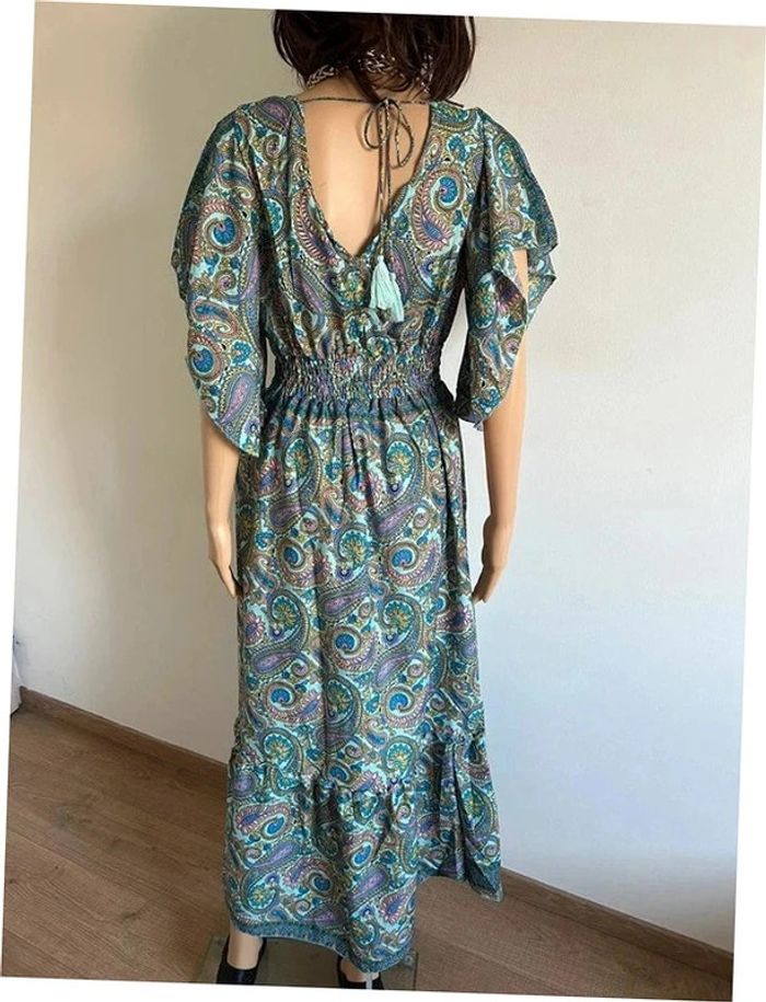 Robe longue imprimée neuve en soie à manches courtes taille unique - photo numéro 5