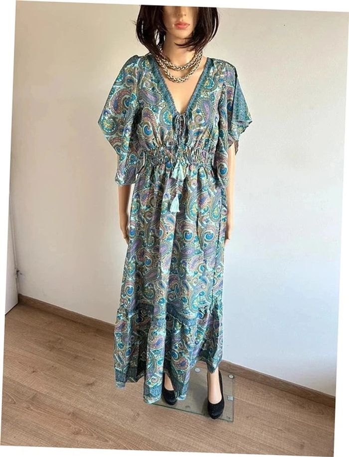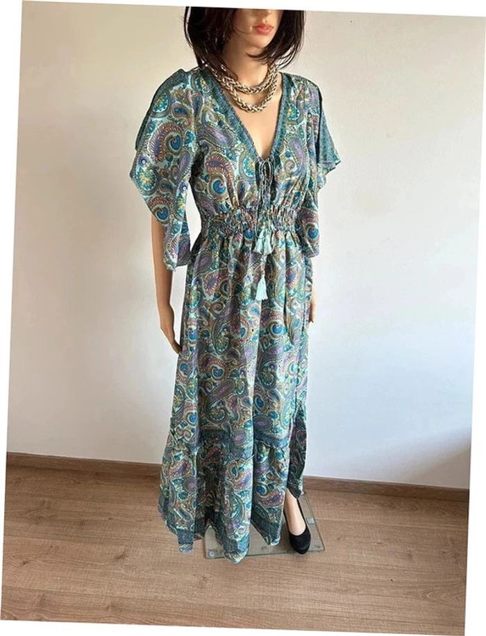 Robe longue imprimée neuve en soie à manches courtes taille unique - photo numéro 2