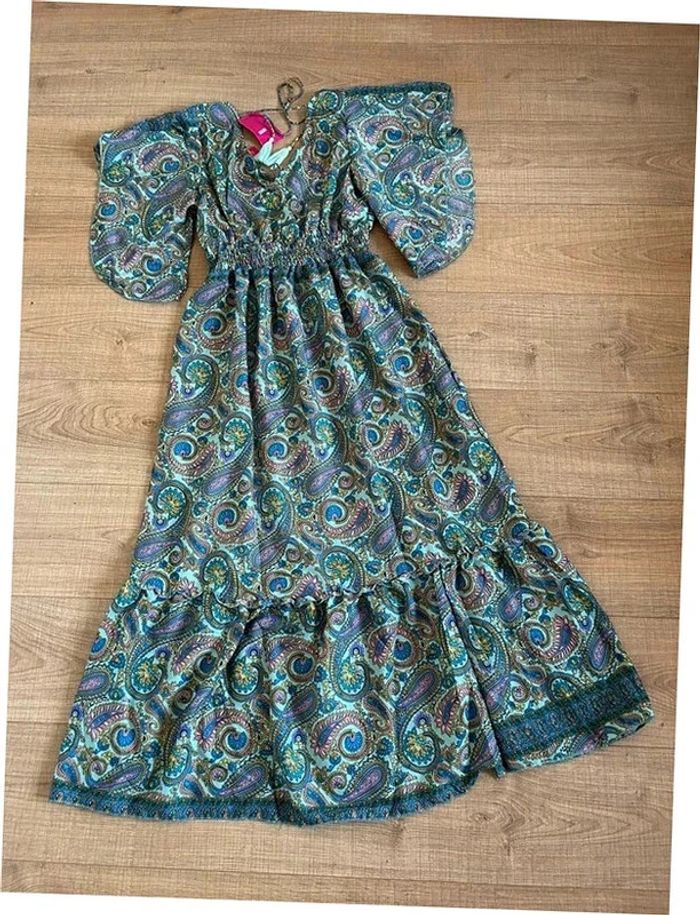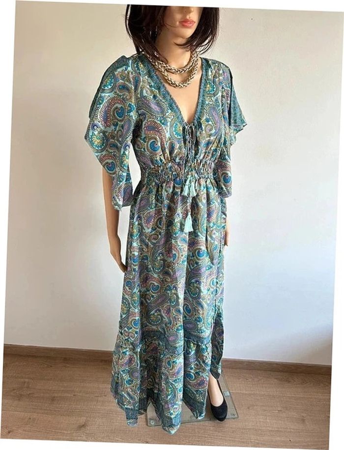 Robe longue imprimée neuve en soie à manches courtes taille unique - photo numéro 14
