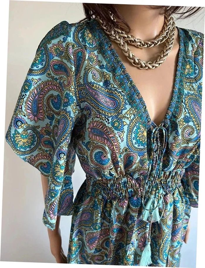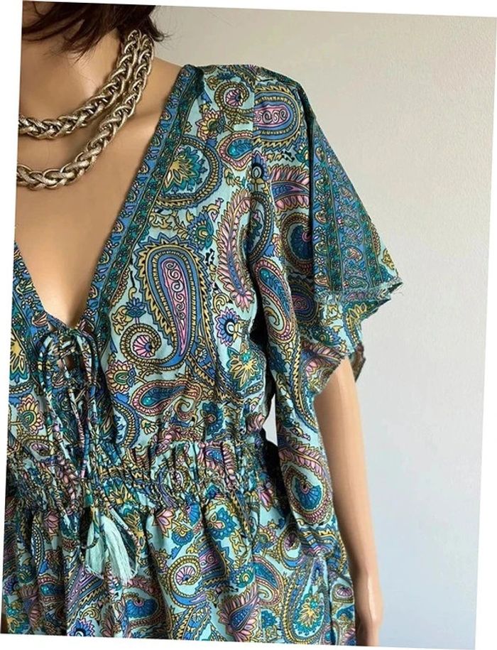 Robe longue imprimée neuve en soie à manches courtes taille unique - photo numéro 15