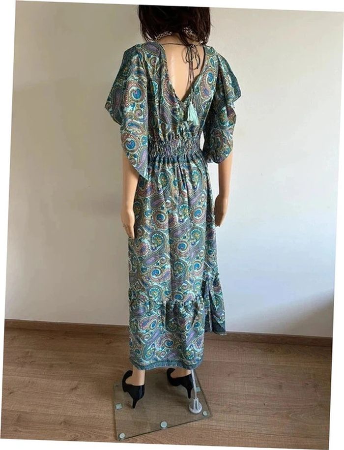 Robe longue imprimée neuve en soie à manches courtes taille unique - photo numéro 7
