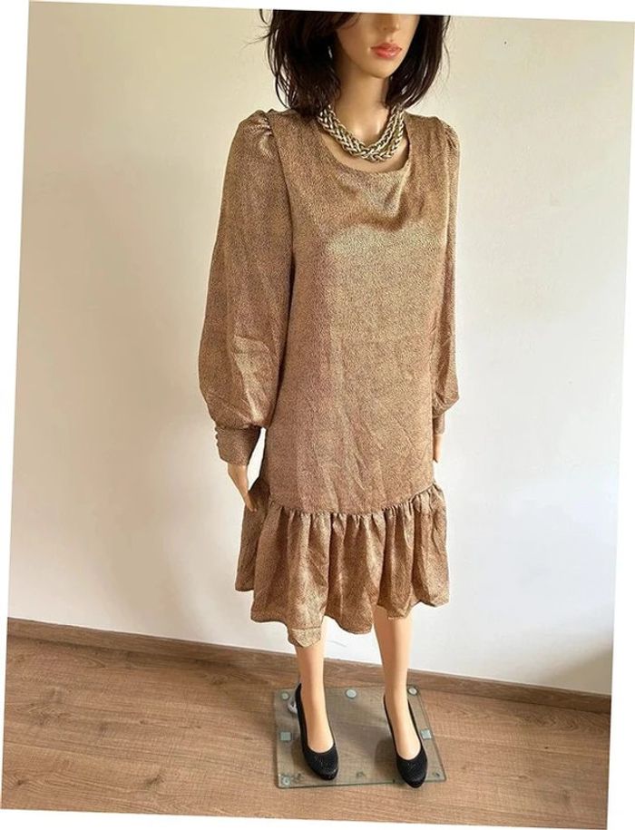 Robe beige et noire satinée neuve à manches longues Molly Bracken taille S - photo numéro 1