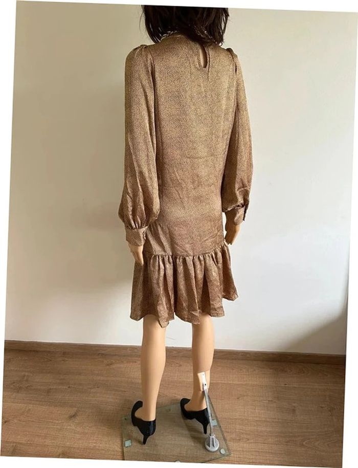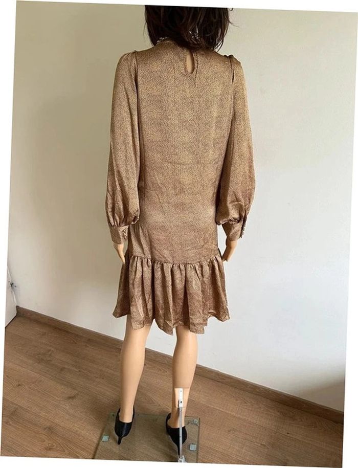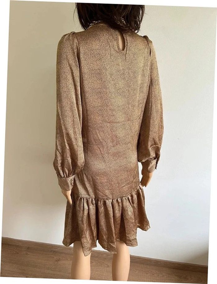Robe beige et noire satinée neuve à manches longues Molly Bracken taille S - photo numéro 15