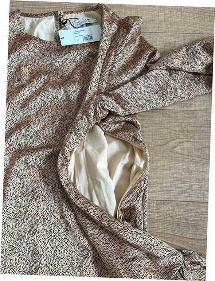 Robe beige et noire satinée neuve à manches longues Molly Bracken taille S - photo numéro 3