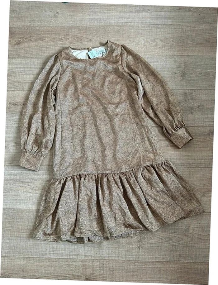 Robe beige et noire satinée neuve à manches longues Molly Bracken taille S - photo numéro 12