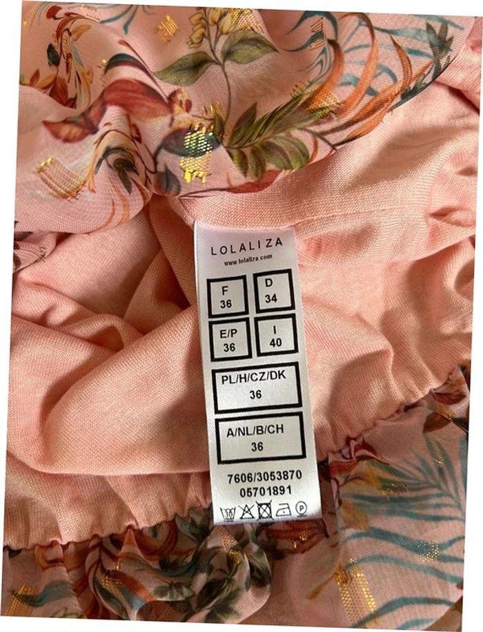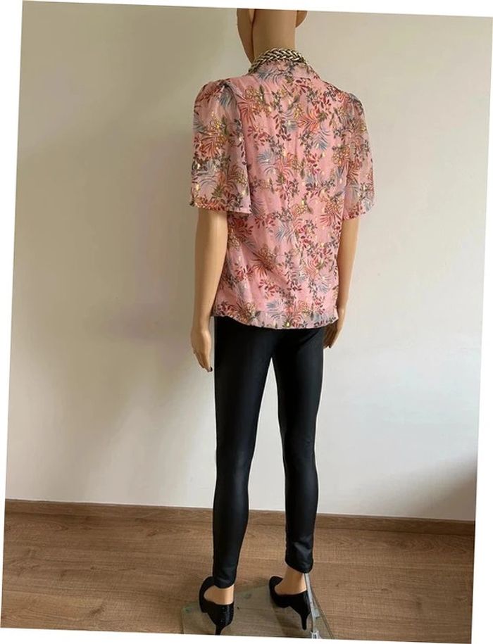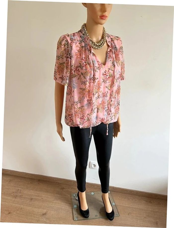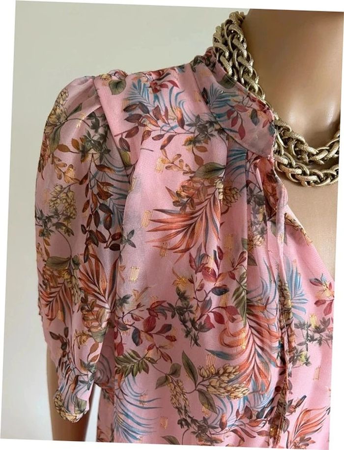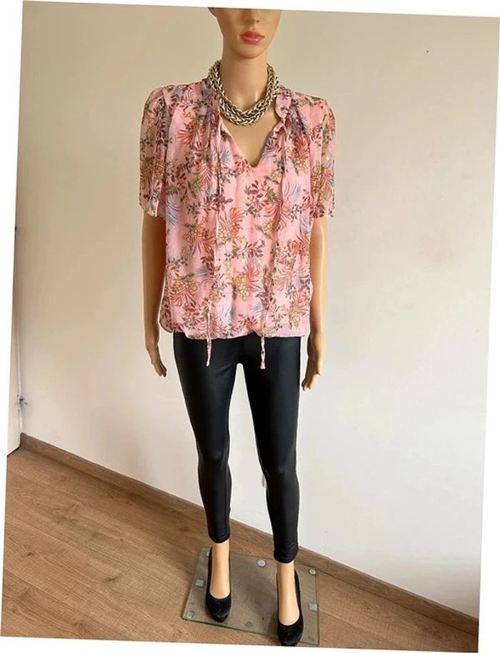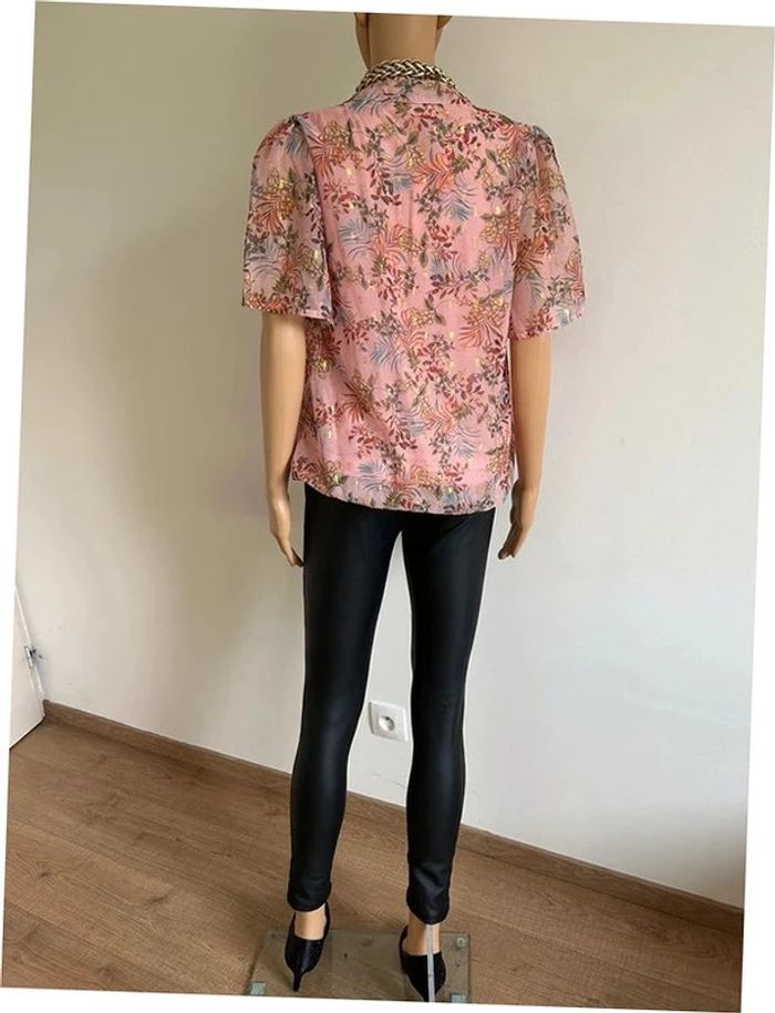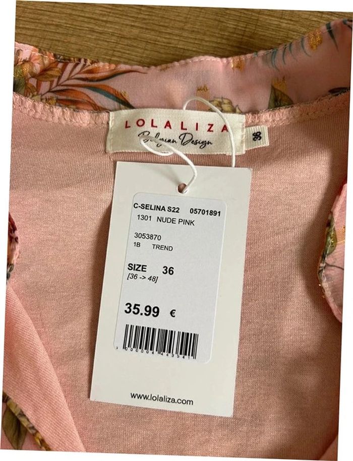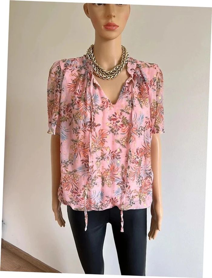 Magnifique blouse rose imprimée fleurie, a manches courtes, avec des reflets dorés, de marque LolaLiza. Taille 36. Elle est neuve avec étiquette (valeur 36€). aisselle à aisselle 45 cms épaule à épaule 37 cms taille 42 cms longueur depuis épaule 60 cms 100% polyester Le prix reste négociable dans la limite du raisonnable. Un petit cadeau dans le colis 🌸 (Boîte 4)
