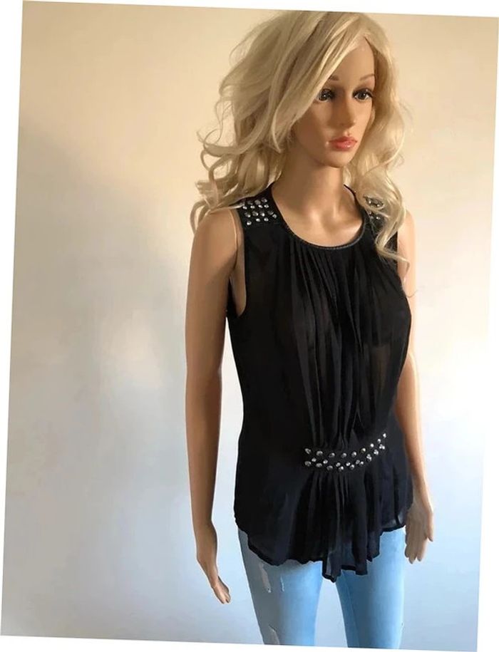 Blouse noire transparente sans manches avec strass Morgan taille 36 TBE - photo numéro 14