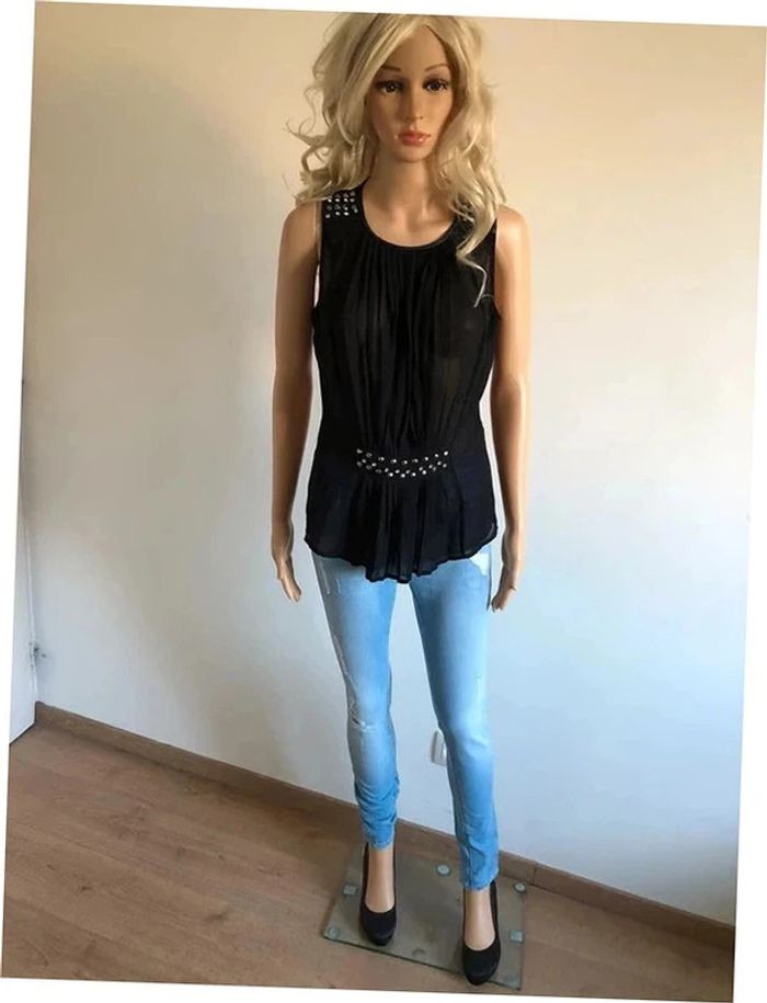 Blouse noire transparente sans manches avec strass Morgan taille 36 TBE - photo numéro 13