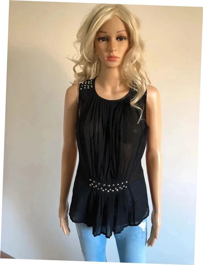 Blouse noire transparente sans manches avec strass Morgan taille 36 TBE - photo numéro 11