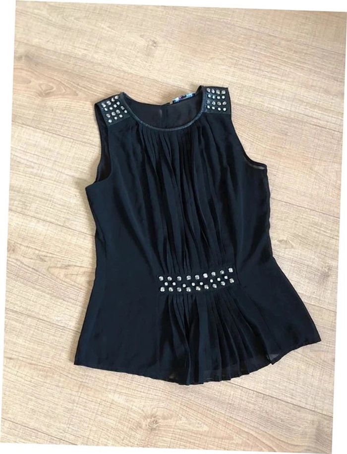Blouse noire transparente sans manches avec strass Morgan taille 36 TBE - photo numéro 12