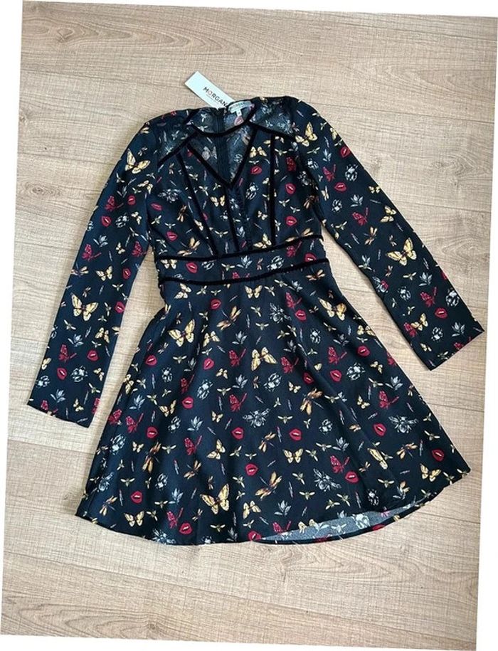 Robe noire et imprimée neuve à manches longues Morgan taille 34 (valeur 75€) - photo numéro 1