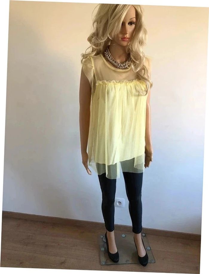 Blouse jaune à manches courtes avec tulle New Collection taille unique jamais portée - photo numéro 14