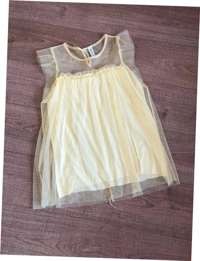 Blouse jaune à manches courtes avec tulle New Collection taille unique jamais portée - photo numéro 1