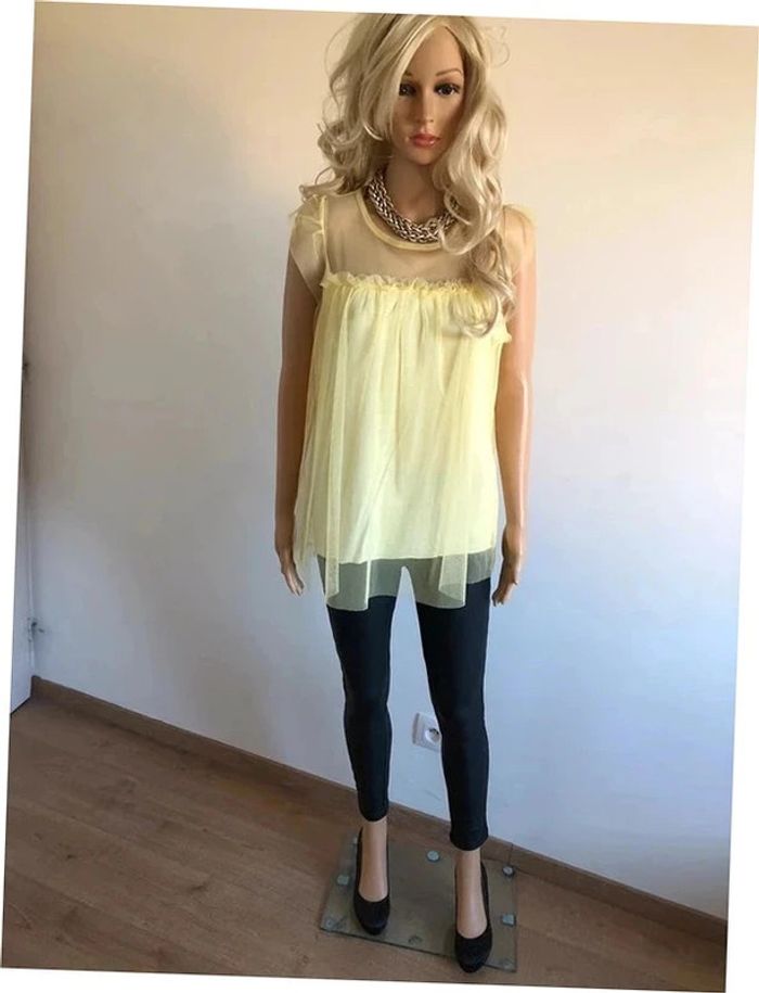 Blouse jaune à manches courtes avec tulle New Collection taille unique jamais portée - photo numéro 11