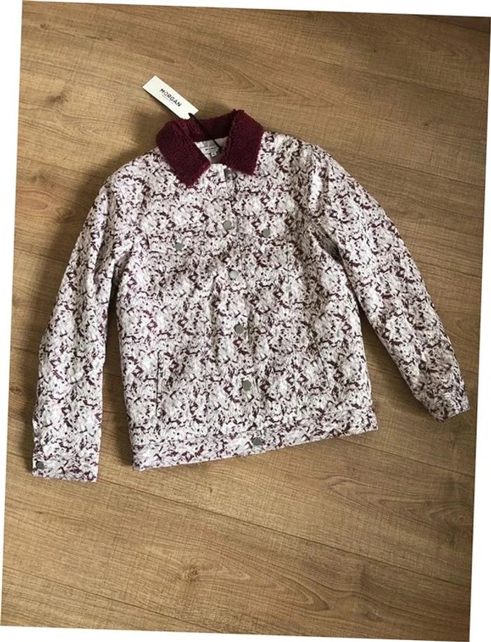 Magnifique manteau beige de rose, avec fausse fourrure bordeaux au niveau du col, de marque Morgan. Fermeture par boutons argentés. Taille 36. Il est neuf avec étiquette (valeur 100€). aisselle à aisselle 50 cms épaule à épaule 44 cms longueur manches 59 cms taille 50 cms longueur depuis épaule 63 cms 77% polyester, 26% coton et 3% elasthanne Le prix reste négociable dans la limite du raisonnable. Un petit cadeau dans le colis.