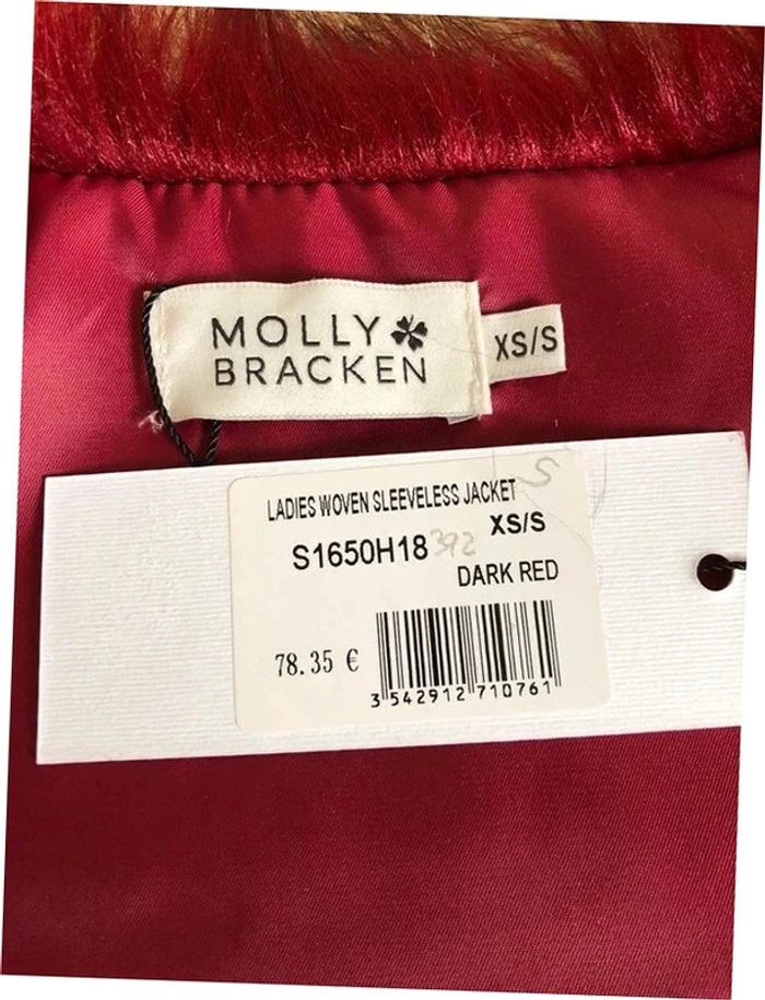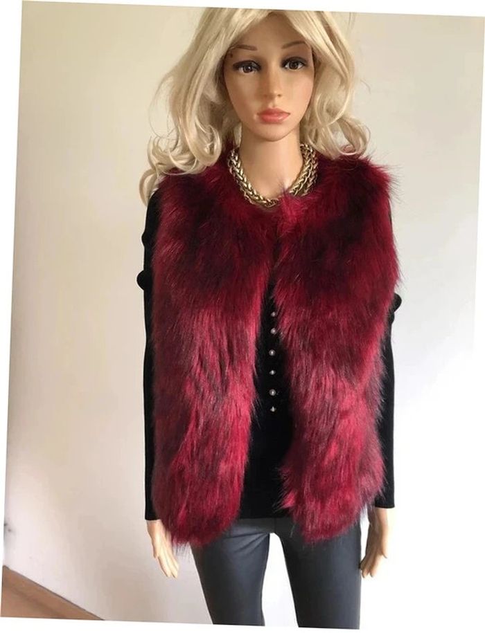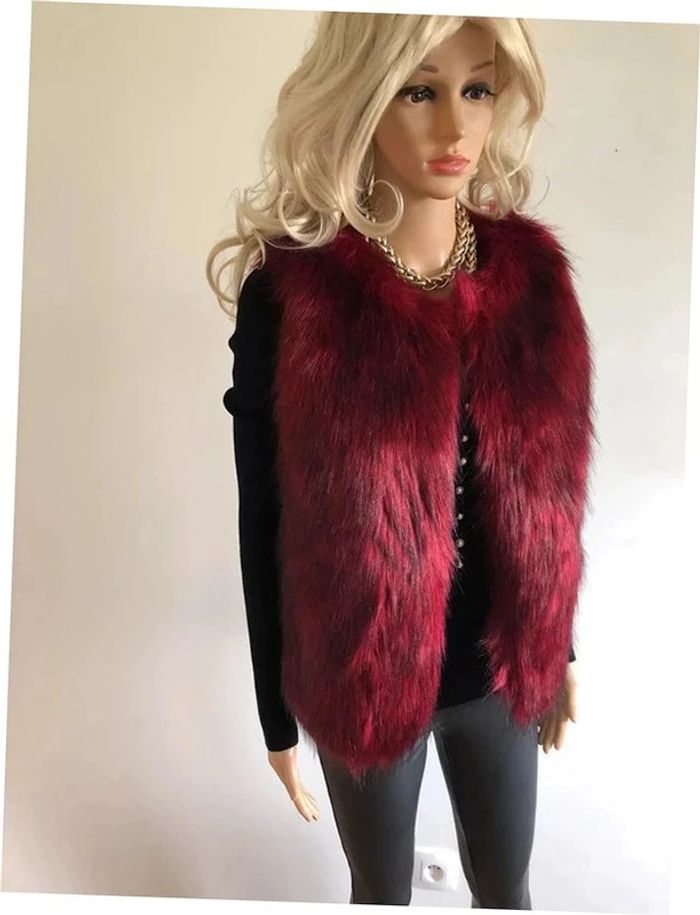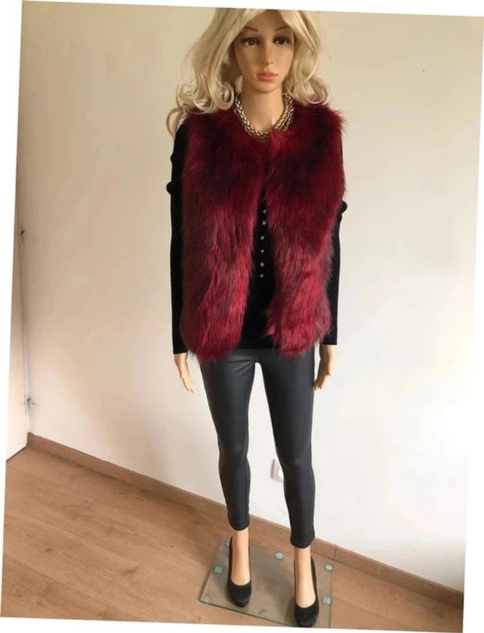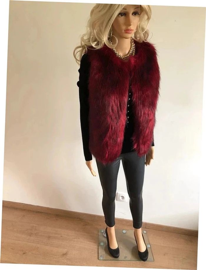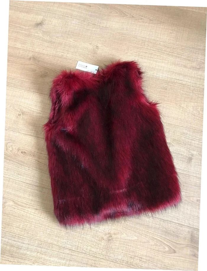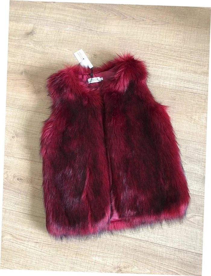Magnifique fausse fourrure rouge bordeaux sans manches, de marque Molly Bracken. Taille XS/S. Ne se ferme pas. Elle est neuve avec étiquette (valeur 78€). Jamais portée car trop petite pour moi. aisselle à aisselle 45 cms taille 48 cms longueur depuis épaule 62 cms 100% polyester Le prix reste négociable dans la limite du raisonnable. Un petit cadeau dans le colis.